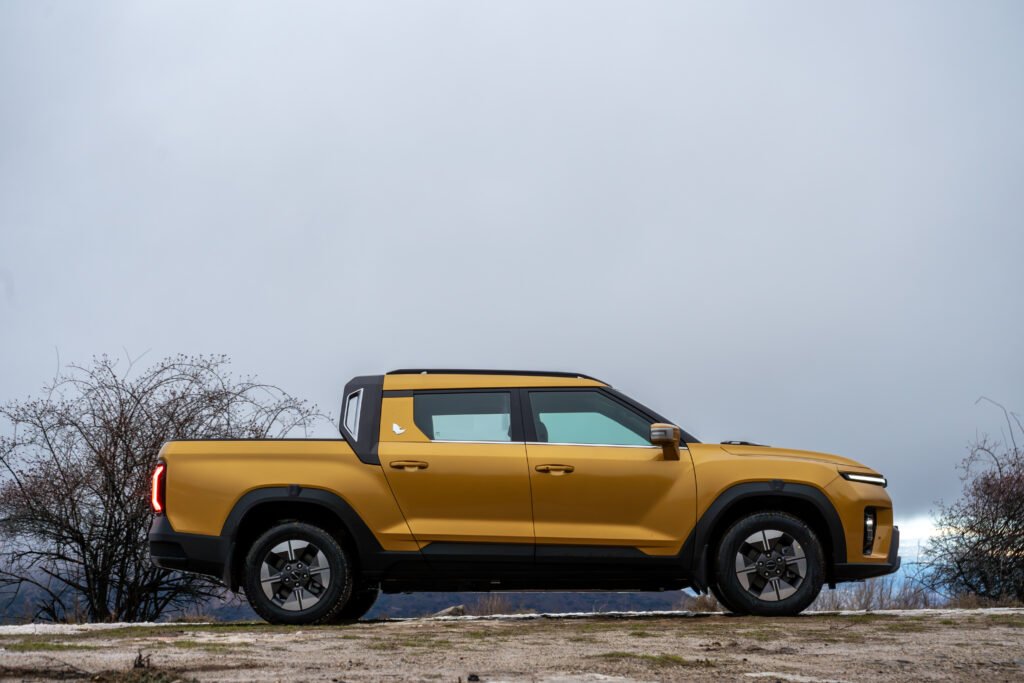 De perfil, destaca la integración fluida entre cabina y caja. No parece un añadido posterior, sino un conjunto sólido. La batalla de 3.150 mm aporta estabilidad visual (y real), mientras que los pasos de rueda marcados y las molduras protectoras recuerdan que esto no es un SUV con complejo de pick-up: es un pick-up con alma moderna.